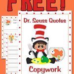 Free Dr. Seuss Copywork Pages Dr. Seuss' birthday gives you so many opportunities to make your homeschool day fun! Writing the ABCs and 123s gets old after a while though, so finding fun copywork pages is essential for your homeschool! Learning to have good penmanship is an important skill for kids of all ages to learn. … [Read more...] about Free Dr. Seuss Copywork Pages